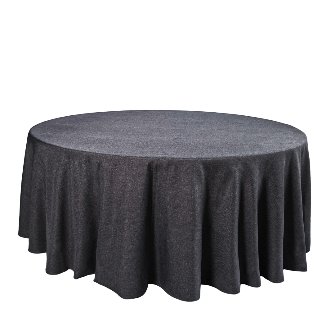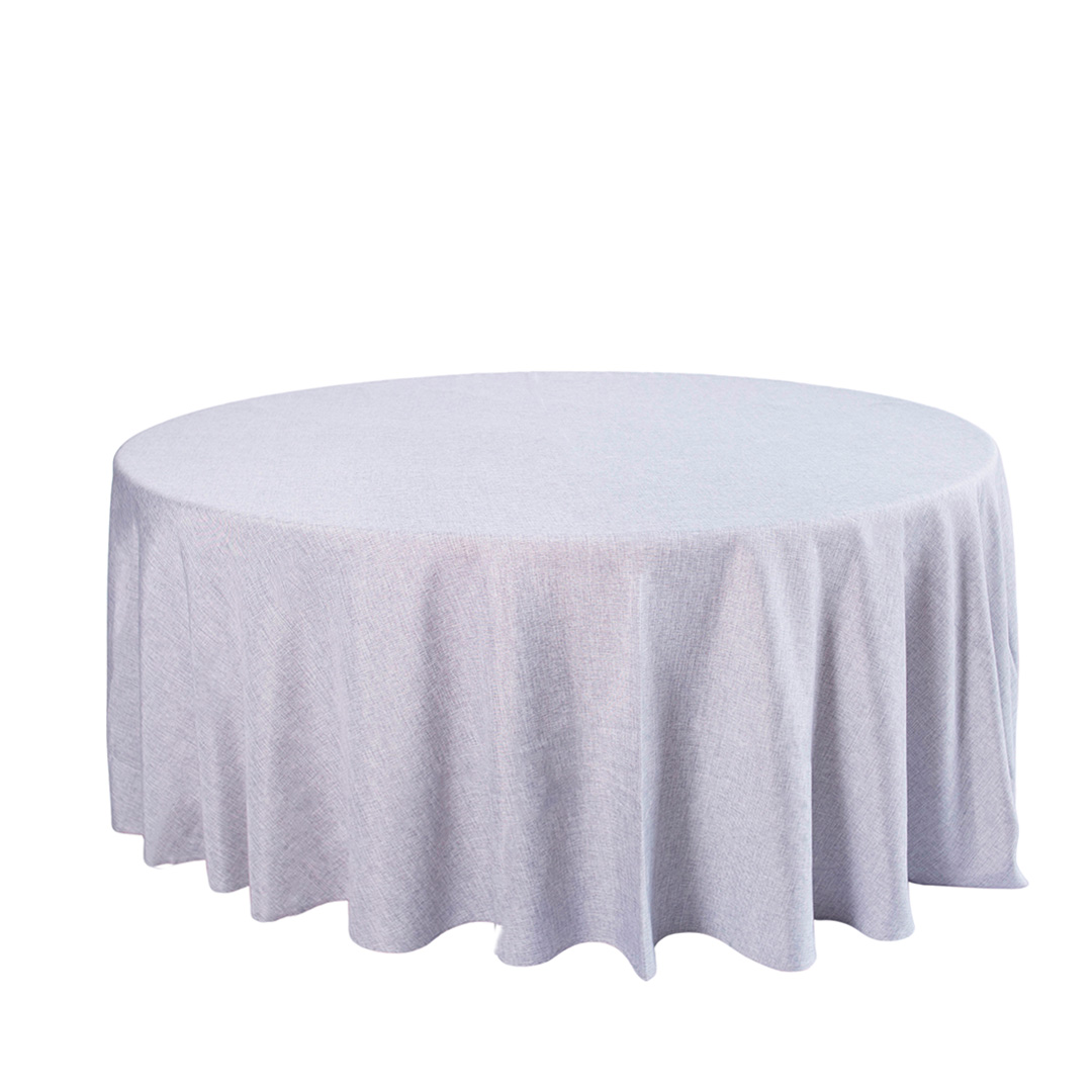 Mesa tipo tablón redonda con mantel de color a elegir. Capacidad para 16-18 personas.